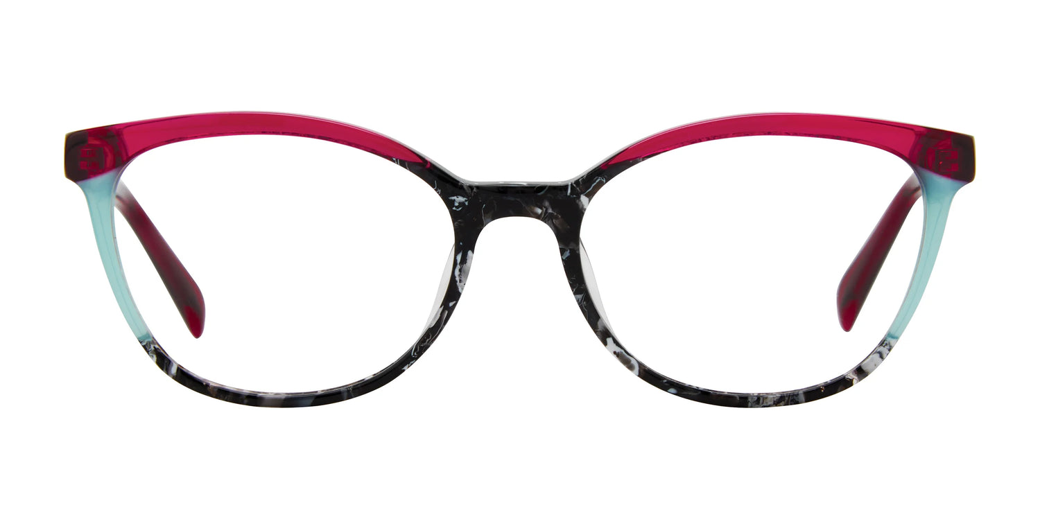 Gather ‘round the campfire! This flattering acetate frame takes the wearable, gently upswept shape to the next level with an exaggerated brow that highlights the custom acetate colors.
