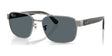 - The sunglasses boast a sleek, metallic, full-rimmed frame with a dual top bar that delivers a sharp, angular shape. The frame has distinctive channels, while the lens and the temple arm are etched with the iconic logo as a mark of authenticity.